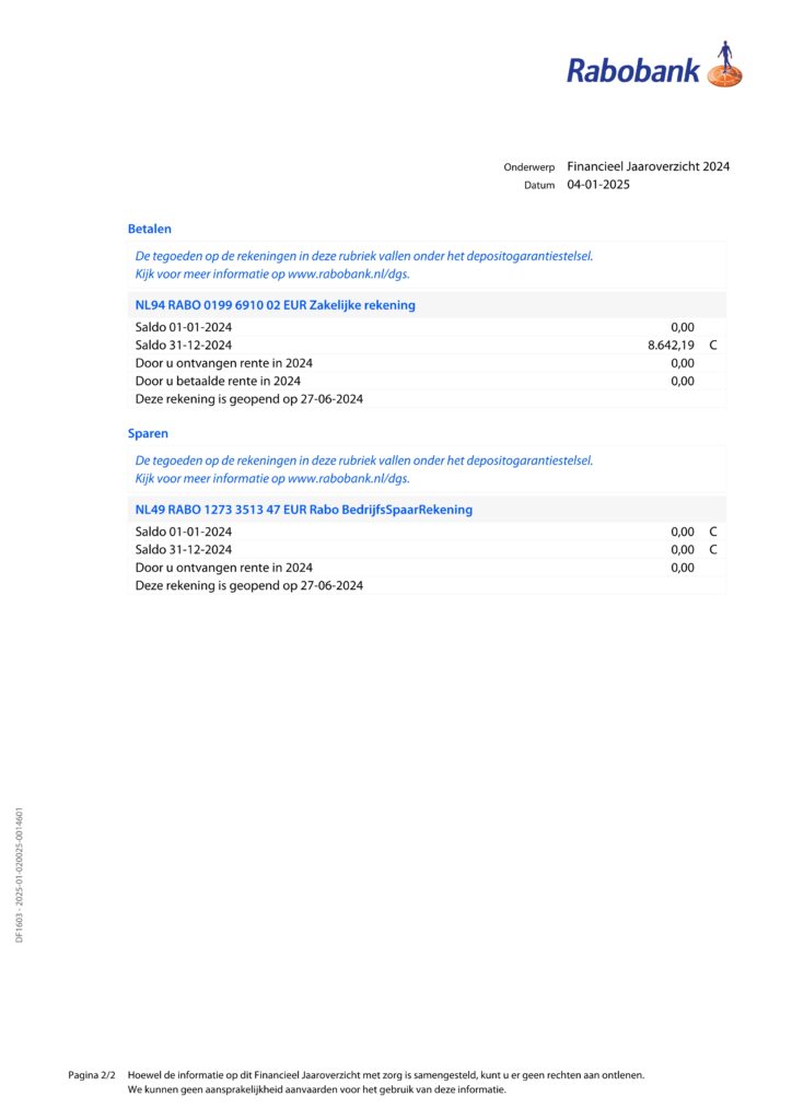 Onderstaand ziet u de financiële verantwoording van onze stichting over de periode 26 juni 2024 tot 31 december 2024 en van 1 januari tot 26 juni 2025 ligt. Dit moet zo omdat ons boekjaar van deze periode op de helft van het jaar ligt.